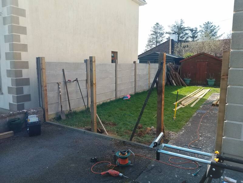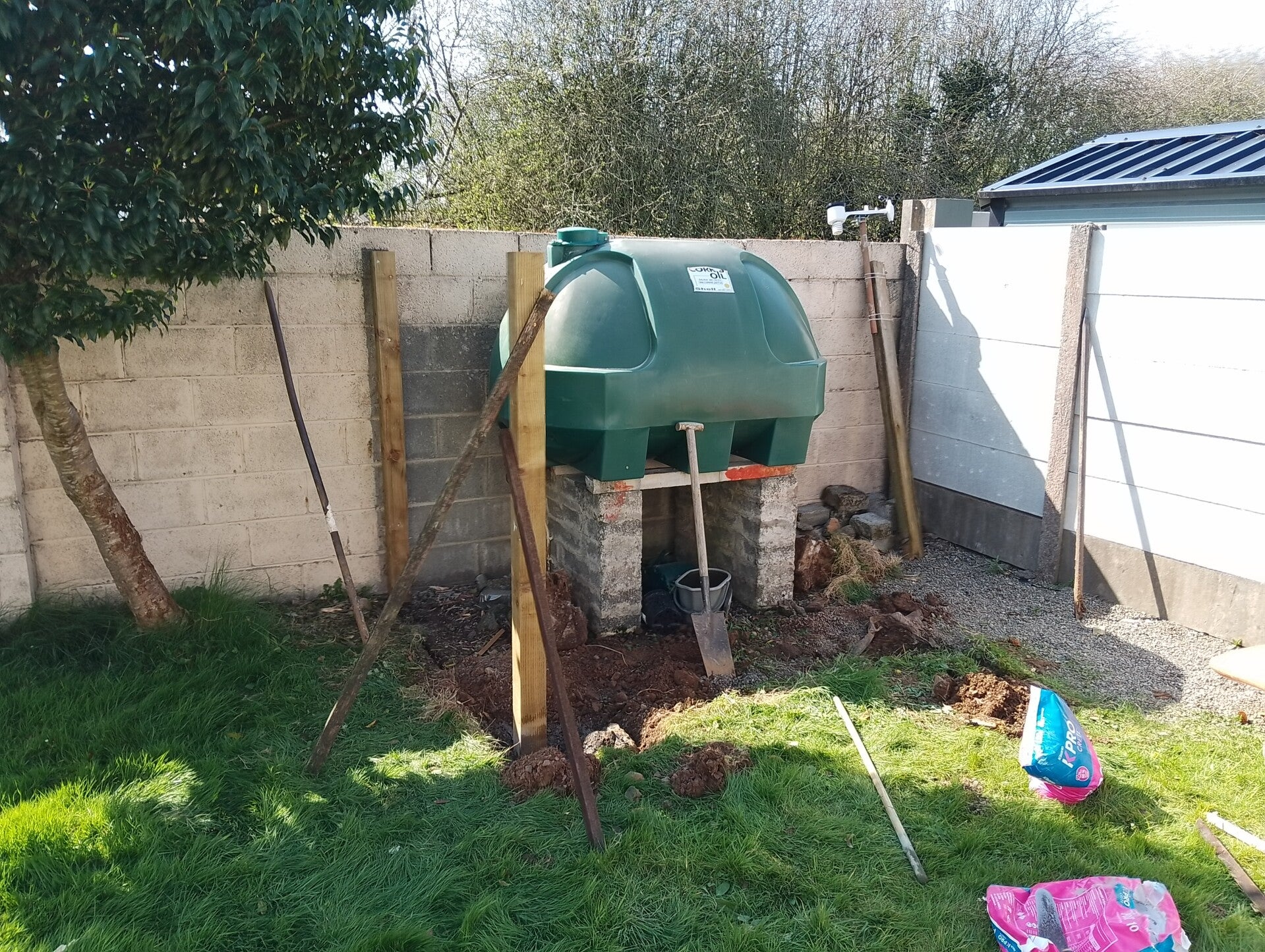 New 6ft fence installation with two 3ft side gates and a new privacy fence in front of an oil tank.